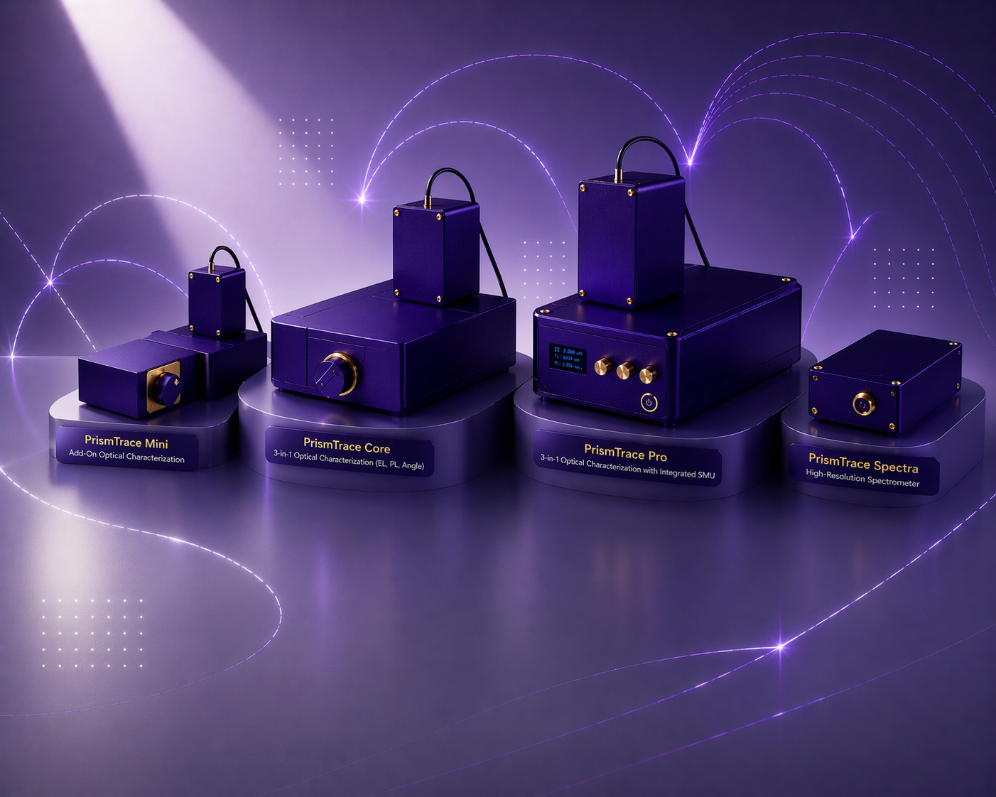 Compact photonic measurement tools for EQE, brightness, and spectral analysis.